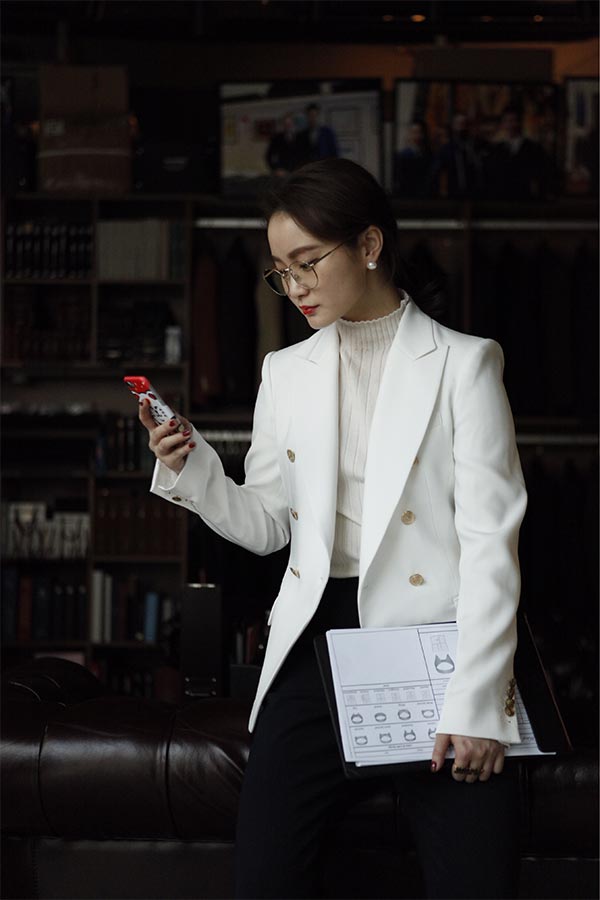 Shelly es una representante de la creciente industria de confecciones a medida en el país. En 2016, ella creó en Chengdu la marca MAKAIF Bespoke conjunto con un equipo internacionalizado, consciente del enorme potencial de la alta costura en el mercado asiático.