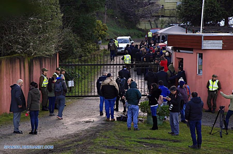 Personas se reúnen en el lugar donde se registró un incendio en el Hogar Santa Marta, en la localidad de Chiguayante, en el sur de Chile, el 14 de agosto de 2018. Al menos diez mujeres de edad avanzada fallecieron la madrugada del martes a consecuencia de un incendio ocurrido en el Hogar Santa Marta para ancianos, en la localidad de Chiguayante, en el sur de Chile. Por causas que se investigan se quemo por completo la sección femenina, de acuerdo con información del Cuerpo de Bomberos y las autoridades locales. (Xinhua/Cristian Castillo/AGENCIAUNO)