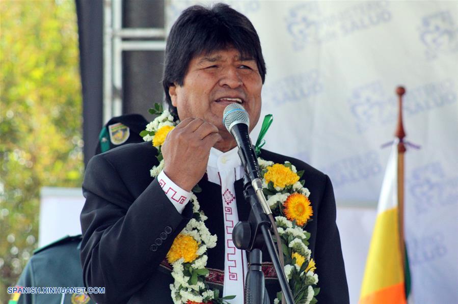 EL ALTO, agosto 13, 2018 (Xinhua) -- El presidente boliviano, Evo Morales, pronuncia un discurso durante un acto realizado en el centro de operaciones del programa "Operación Milagro", en El Alto, Bolivia, el 13 de agosto de 2018. De acuerdo con información de la prensa local, Morales rindió un homenaje al fallecido líder histórico de la Revolución Cubana, Fidel Castro en el marco del 92 aniversario de su natalicio, durante un acto en el que mandatario boliviano celebró las más de 700,235 cirugías oftalmológicas que desde 2006 ha realizado el programa "Operación Milagro", recordando que fue Castro quien le dijo que se podía operar de la vista gratuitamente. (Xinhua/José Lirauze/ABI)