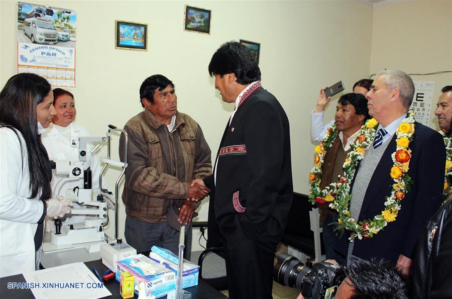 EL ALTO, agosto 13, 2018 (Xinhua) -- El presidente boliviano, Evo Morales (c), participa durante un acto realizado en el centro de operaciones del programa "Operación Milagro", en El Alto, Bolivia, el 13 de agosto de 2018. De acuerdo con información de la prensa local, Morales rindió un homenaje al fallecido líder histórico de la Revolución Cubana, Fidel Castro en el marco del 92 aniversario de su natalicio, durante un acto en el que mandatario boliviano celebró las más de 700,235 cirugías oftalmológicas que desde 2006 ha realizado el programa "Operación Milagro", recordando que fue Castro quien le dijo que se podía operar de la vista gratuitamente. (Xinhua/José Lirauze/ABI)
