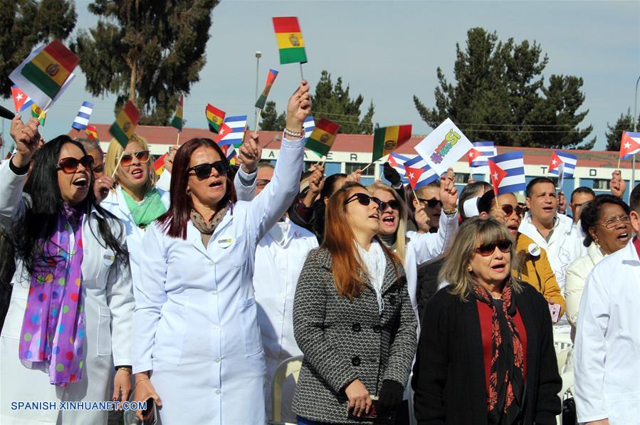 EL ALTO, agosto 13, 2018 (Xinhua) -- Personas participan durante un acto realizado en el centro de operaciones del programa "Operación Milagro", en El Alto, Bolivia, el 13 de agosto de 2018. De acuerdo con información de la prensa local, Evo Morales rindió un homenaje al fallecido líder histórico de la Revolución Cubana, Fidel Castro en el marco del 92 aniversario de su natalicio, durante un acto en el que mandatario boliviano celebró las más de 700,235 cirugías oftalmológicas que desde 2006 ha realizado el programa "Operación Milagro", recordando que fue Castro quien le dijo que se podía operar de la vista gratuitamente. (Xinhua/José Lirauze/ABI)