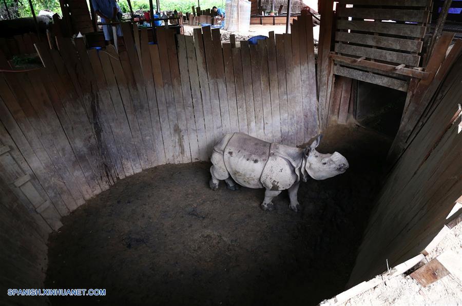 CHITWAN, agosto 14, 2018 (Xinhua) -- Imagen del archivo del 9 de julio de 2018 del rinoceronte de un cuerno llamado "Mitini", que será obsequiado a China, recorriendo su "Boma", un refugio especial dentro de las instalaciones del Parque Nacional de Chitwan, en Chitwan, Nepal. Nepal está listo para regalar otro par de bebés de rinoceronte de un cuerno llamados "Soaltee" y "Mitini" a China como parte del mejoramiento de la amistad entre los dos vecinos. Anteriormente, un par de rinocerontes había volado a China el 12 de julio de 2018. (Xinhua/Sunil Sharma)