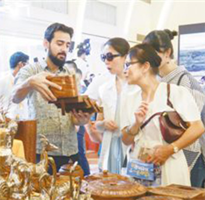 En la exposición "Un Cinturón, Una Ruta" de 2018, un comerciante extranjero muestra productos especiales a los consumidores chinos.(Imagen de Renmin Shijue)