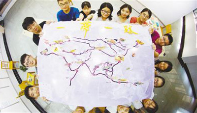 En el Instituto de Turismo Culinario de la Universidad de Yangzhou en la provincia de Jiangsu, los estudiantes universitarios crean mapas de "Un Cinturón, Una Ruta" con alimentos. Imagen de Renmin Shijue