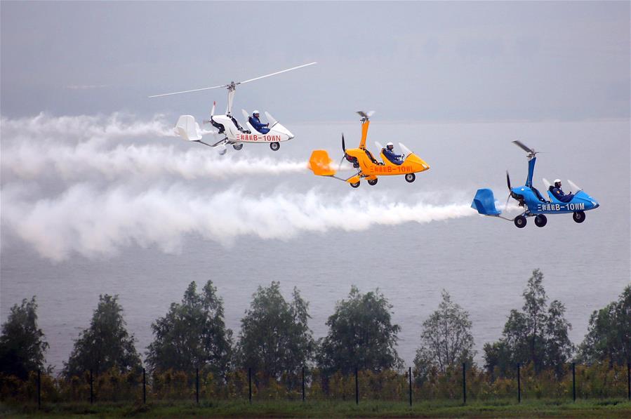 LIAONING, agosto 18, 2018 (Xinhua) -- Un espectáculo de vuelo acrobático es llevado a cabo durante la 7 Conferencia de Vuelo de Faku, en Shenyang, capital de la provincia de Liaoning, en el noreste de China, el 18 de agosto de 2018. La conferencia de vuelo comenzó el sábado en Shenyang. (Xinhua/Yao Jianfeng)
