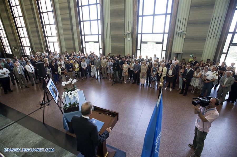 Personas asisten a una ceremonia conmemorativa para rendir tributo al ex secretario general de la Organización de las Naciones Unidas (ONU), Kofi Annan, en el Palacio de las Naciones, en Ginebra, Suiza, el 20 de agosto de 2018. El ex secretario general de la ONU, Kofi Annan, murió el sábado a los 80 a?os. (Xinhua/Xu Jinquan)