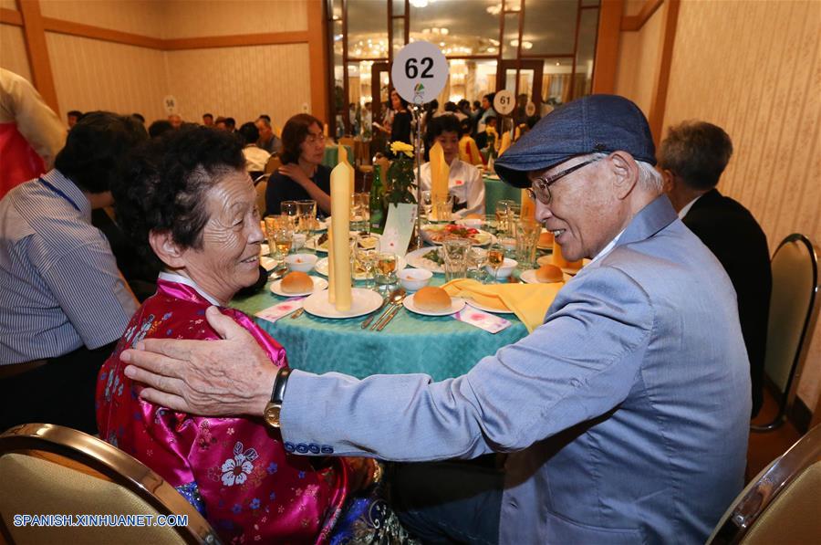 MONTE KUMGANG, agosto 20, 2018 (Xinhua) -- Miembros de familias separadas cenan juntos en el Monte Kumgang, en el sureste de la República Popural Democrática de Corea (RPDC), el 20 de agosto de 2018. Familias de la República de Corea y de la República Popular Democrática de Corea (RPDC) separadas por la Guerra Coreana de 1950 a 1953 se reunieron finalmente el lunes entre lágrimas y alegría después de no haberse visto en décadas. (Xinhua/Str)