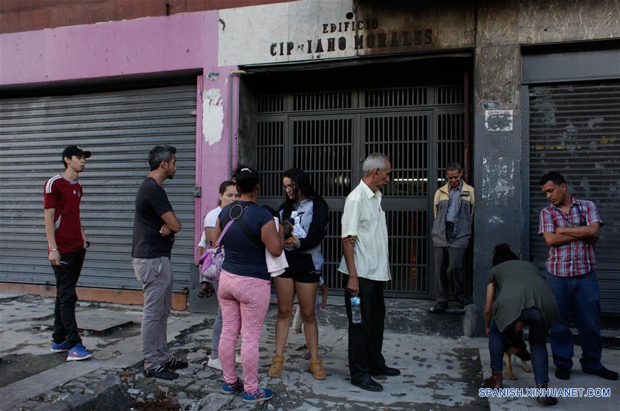 Personas reaccionan después de un sismo, en Caracas, Venezuela, el 21 de agosto de 2018. Un sismo de magnitud 7,3 en la escala de Richter ocurrió el martes a las 17:31:42 hora de Venezuela a 20 kilómetros al nornoroeste de Yaguaraparo, Venezuela, informó el Servicio Geológico de Estados Unidos. (Xinhua/Boris Vergara)