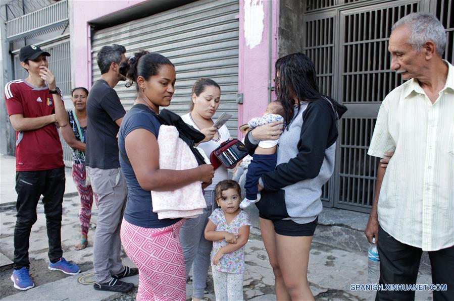 Personas reaccionan después de un sismo, en Caracas, Venezuela, el 21 de agosto de 2018. Un sismo de magnitud 7,3 en la escala de Richter ocurrió el martes a las 17:31:42 hora de Venezuela a 20 kilómetros al nornoroeste de Yaguaraparo, Venezuela, informó el Servicio Geológico de Estados Unidos. (Xinhua/Boris Vergara)
