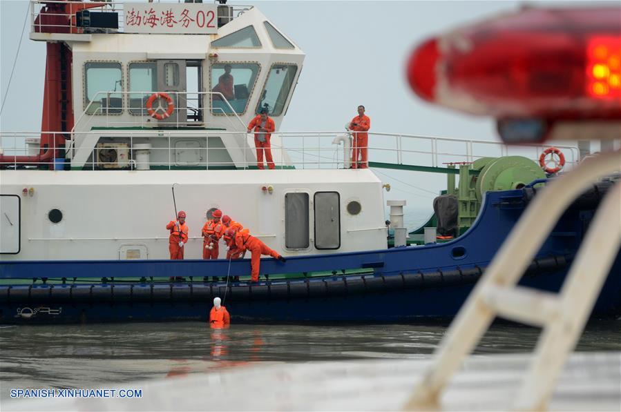 HEBEI, agosto 21, 2018 (Xinhua) -- Rescatistas participan en un simulacro de emergencia marítima llevado a cabo cerca del Puerto de Huanghua en Cangzhou, provincia de Hebei, en el norte de China, el 21 de agosto de 2018. Las administraciones de seguridad marítima de Hebei, Tianjin y Shandong llevaron a cabo el martes un simulacro de emergencia conjunto en el oeste del mar de Bohai para mejorar la búsqueda y rescate en el mar así como la respuesta a derrames de petróleo. (Xinhua/Ma Ning)