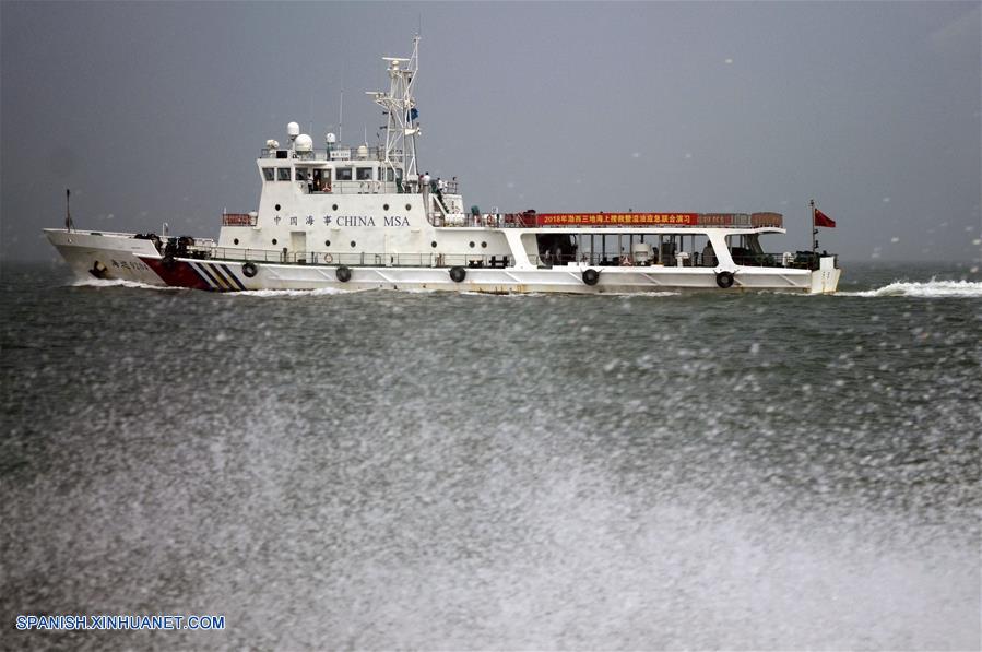 HEBEI, agosto 21, 2018 (Xinhua) -- Un buque participa en un simulacro de emergencia marítima llevado a cabo cerca del Puerto de Huanghua en Cangzhou, provincia de Hebei, en el norte de China, el 21 de agosto de 2018. Las administraciones de seguridad marítima de Hebei, Tianjin y Shandong llevaron a cabo el martes un simulacro de emergencia conjunto en el oeste del mar de Bohai para mejorar la búsqueda y rescate en el mar así como la respuesta a derrames de petróleo. (Xinhua/Ma Ning)