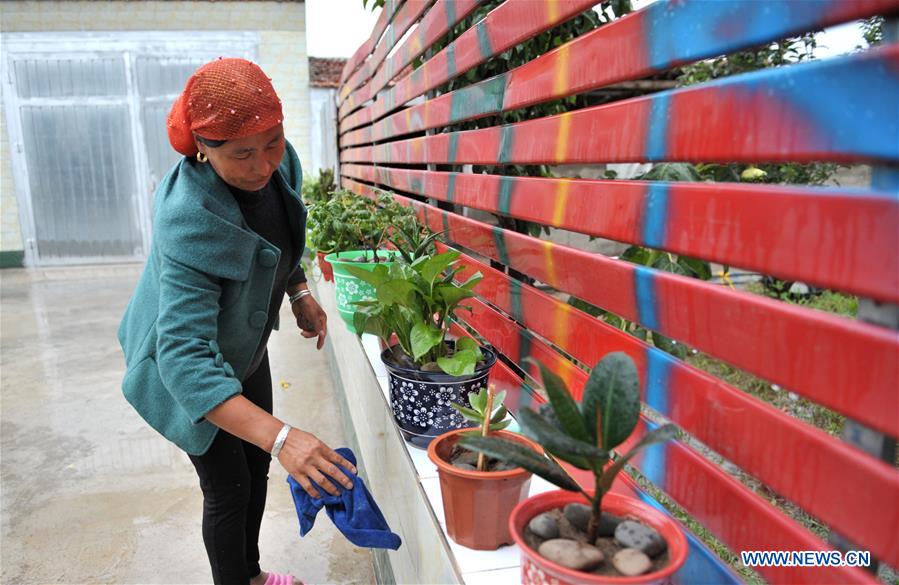 Wuzhong, 22/08/2018 (El Pueblo en Línea) -Una aldeana limpia un patio en una posada familiar en Yongxin Village, distrito Hongsibao de la ciudad de Wuzhong, en la región autónoma Hui de Ningxia, al noroeste de China, el 21 de agosto de 2018. Más de 20 hogares en la aldea han establecido posadas familiares como firma de negocio desde 2017. (Xinhua/Xiao Xiao)
