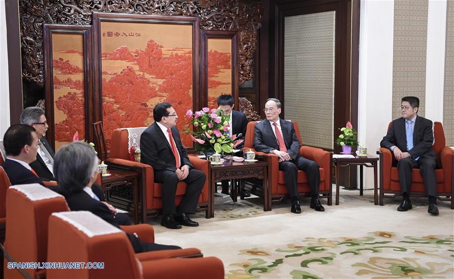 BEIJING, 21 ago (Xinhua) -- El vicepresidente de China, Wang Qishan, se reunió hoy martes en Beijing con una delegación de El Salvador integrada por Medardo González Trejo, el primer designado a la presidencia, Francisco Rubén Alvarado Fuentes, secretario legal del presidente, y Carlos Casta?eda, ministro de Relaciones Exteriores.