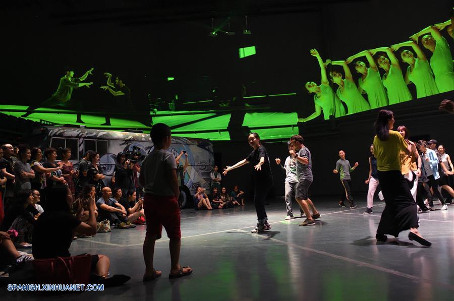 BEIJING, agosto 22, 2018 (Xinhua) -- Bailarines interactúan con el público en la ceremonia de inauguración del 4 Festival de Danza Nueva de Beijing, en Beijing, capital de China, el 22 de agosto de 2018. (Xinhua/Jin Liangkuai)