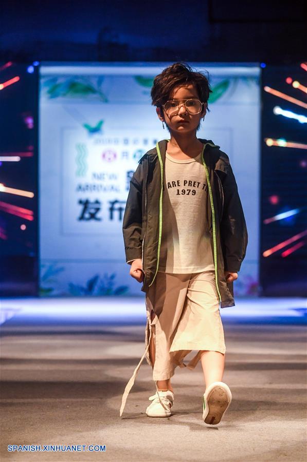 ZHEJIANG, agosto 22, 2018 (Xinhua) -- Un ni?o modelo presenta prendas de vestir para ni?o durante un evento de lanzamiento de un nuevo producto, en el municipio de Zhili de Huzhou, provincia de Zhejiang, en el este de China, el 22 de agosto de 2018. El municipio de Zhili es bien conocido por su industria de confección de prendas de vestir para ni?o. (Xinhua/Xu Yu)