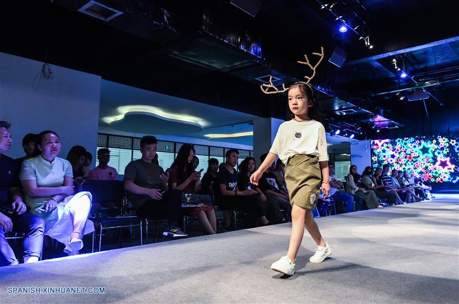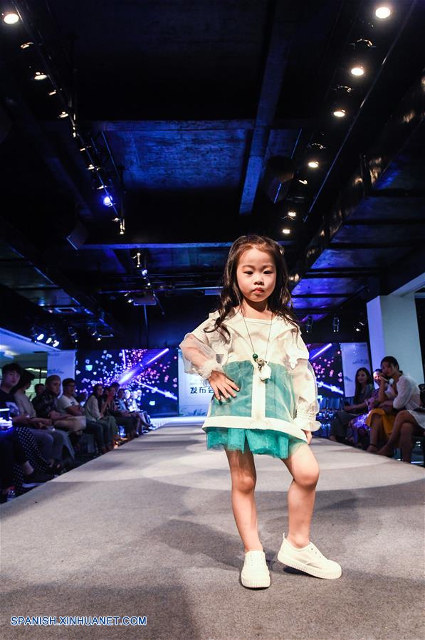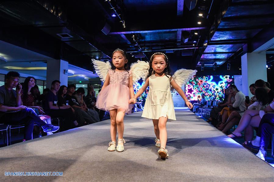 ZHEJIANG, agosto 22, 2018 (Xinhua) -- Ni?as modelos presentan prendas de vestir para ni?a durante un evento de lanzamiento de un nuevo producto, en el municipio de Zhili de Huzhou, provincia de Zhejiang, en el este de China, el 22 de agosto de 2018. El municipio de Zhili es bien conocido por su industria de confección de prendas de vestir para ni?o. (Xinhua/Xu Yu)