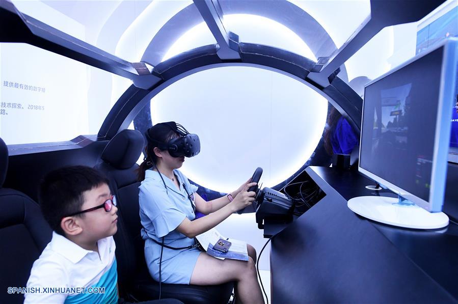 CHONGQING, agosto 23, 2018 (Xinhua) -- Personas prueban un simulador de conducción no tripulado en la primera Exposición China Inteligente, en la municipalidad de Chongqing, en el suroeste de China, el 23 de agosto de 2018. La primera edición de la Exposición China Inteligente fue inaugurada el jueves en la municipalidad suroccidental de Chongqing y atrajo a más de 500 empresas nacionales e internacionales como expositoras y a más de 100 huéspedes extranjeros de 28 países y regiones. La exposición, con el tema "Tecnología inteligente: Empoderar la economía, enriquecer la vida", se llevará a cabo de jueves a sábado enfocándose en nuevos productos, tecnología y modos en el desarrollo global de macrodatos y las industrias inteligentes, de acuerdo con el comité organizador. (Xinhua/Wang Quanchao)