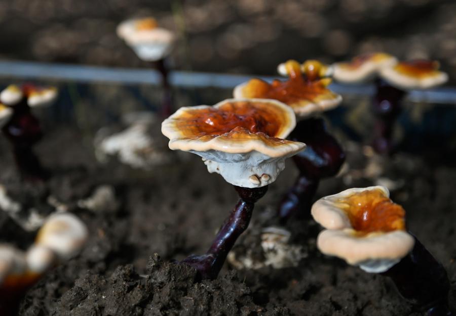 Foto del 27 de julio de 2018 muestra un hongo lingzhi blanco que crece en la ciudad de Nyingchi, región autónoma del Tíbet. [Foto / Xinhua]