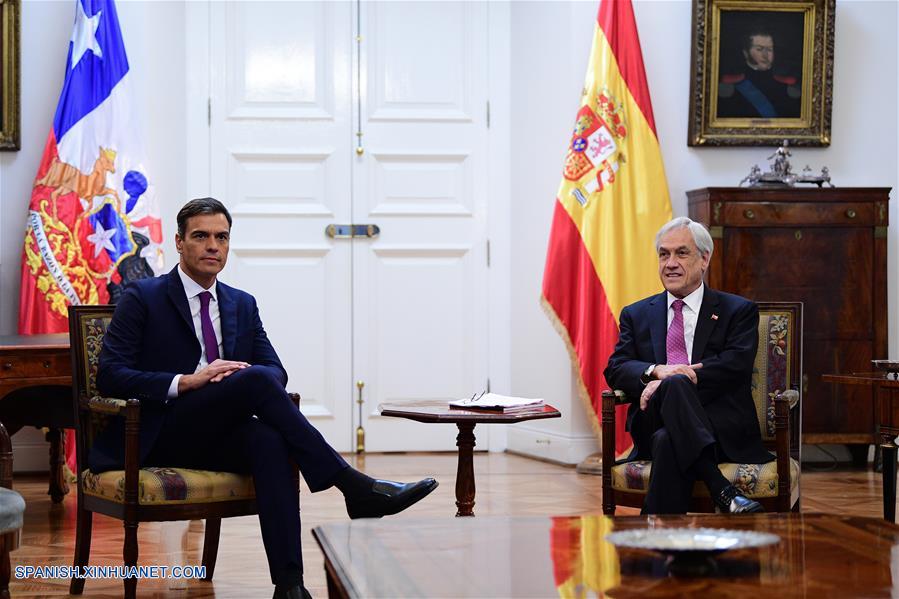 SANTIAGO, agosto 27, 2018 (Xinhua) -- El presidente de Chile, Sebastián Pi?era (d), y el presidente del Gobierno espa?ol, Pedro Sánchez (i), se reúnen en el Palacio de La Moneda, en Santiago, capital de Chile, el 27 de agosto de 2018. De acuerdo con información de la prensa local, el presidente del Gobierno espa?ol, Pedro Sánchez, llegó el lunes a Chile, como parte de su gira latinoamericana, en la que incluirá Bolivia, Colombia y Costa Rica. (Xinhua/Jorge Villegas)