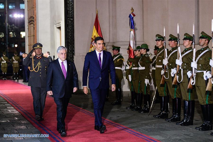 SANTIAGO, 27 ago (Xinhua) -- El presidente de Espa?a, Pedro Sánchez, se reunió este lunes con su homólogo chileno Sebastián Pi?era en Santiago de Chile, en un encuentro en el que ambos mandatarios acordaron sobre temas de educación y ciberseguridad.