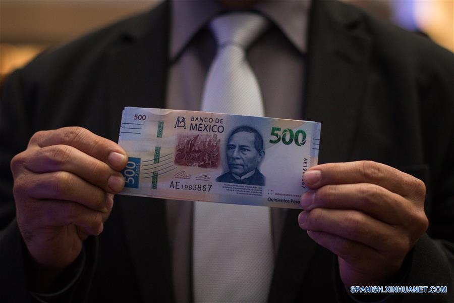 Una persona muestra el nuevo billete de 500 pesos mexicanos, en la Ciudad de México, capital de México, el 27 de agosto de 2018. De acuerdo con información de la prensa local, el nuevo dise?o, que lleva el rostro del expresidente mexicano, Benito Juárez y que comenzará su circulación el martes, conmemora el proceso histórico de la Reforma y la restauración de la República. (Xinhua/Francisco Ca?edo)