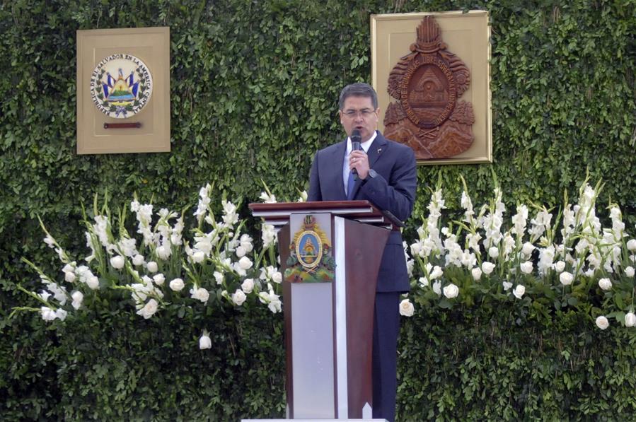 El presidente hondure?o, Juan Orlando Hernández, pronuncia un discurso durante un acto conmemorativo con motivo del Día de la Bandera Nacional, en Tegucigalpa, capital de Honduras, el 1 de septiembre de 2018. De acuerdo con información de la prensa local, este a?o Honduras celebra el 197 aniversario de su independencia. (Xinhua/Rafael Ochoa)