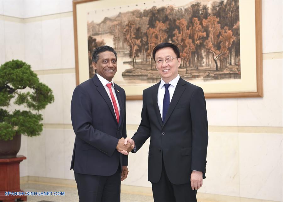 BEIJING, 1 sep (Xinhua) -- El vice primer ministro chino Han Zheng se reunió hoy sábado con el presidente de Seychelles, Danny Faure, en vísperas de la Cumbre de Beijing 2018 del Foro de Cooperación China-áfrica.