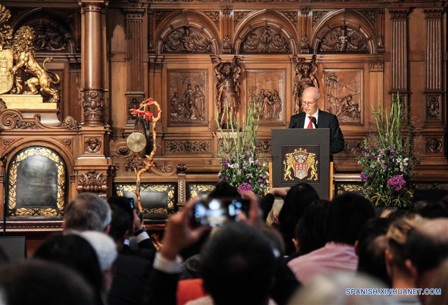 Imagen del 31 de agosto de 2018 del alcalde de Hamburgo, Peter Tschentscher, pronunciando un discurso durante la ceremonia de inauguración de la VII Hora de China, en Hamburgo, en el norte de Alemania. La VII Hora de China fue inaugurada el viernes por la noche en la ciudad portuaria de Hamburgo, en el norte de Alemania, con el objetivo de fomentar la amistad y el entendimiento mutuo entre Hamburgo y China. (Xinhua/Zhu Sheng)