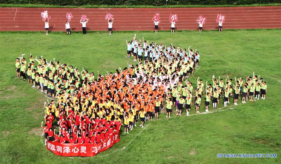 JIANGSU, septiembre 3, 2018 (Xinhua) -- Estudiantes participan en una actividad en una escuela en Suzhou, provincia de Jiangsu, en el este de China, el 3 de septiembre de 2018. Escuelas alrededor del país preparan varias actividades para que los estudiantes reciban el nuevo semestre. (Xinhua/Zhu Guigen)