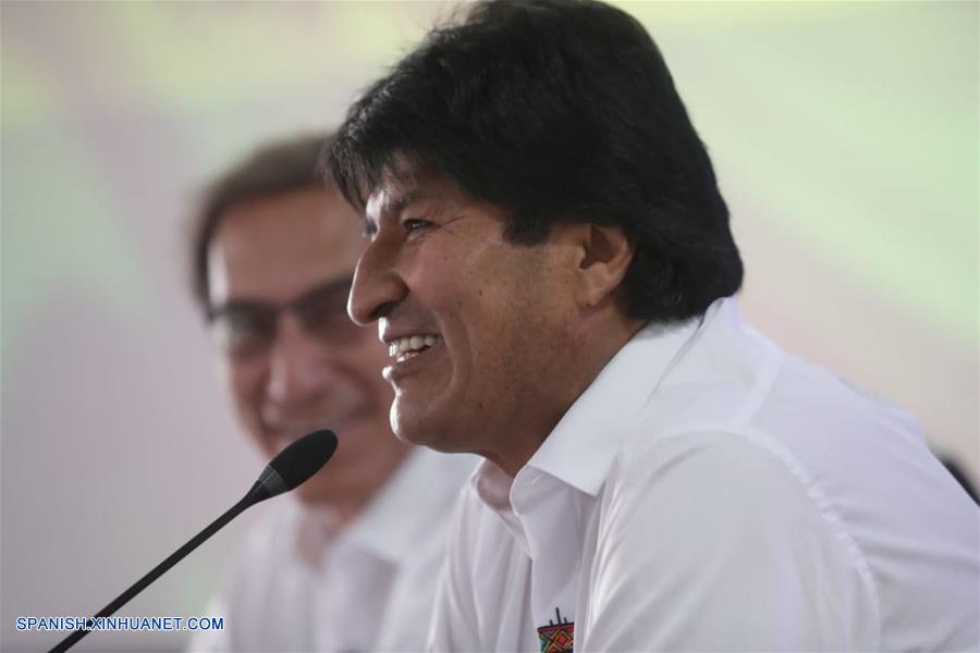 COBIJA, septiembre 3, 2018 (Xinhua) -- El presidente de Bolivia, Evo Morales (frente), pronuncia un discurso previo a la instalación del IV Gabinete Binacional, en la ciudad de Cobija, Bolivia, el 3 de septiembre de 2018. Los gobiernos de Bolivia y Perú instalaron el lunes el IV Gabinete Binacional en la ciudad boliviana de Cobija (norte), presidido por sus presidentes Evo Morales y Martín Vizcarra, respectivamente, para revisar avances de la agenda bilateral y perfilar acciones prioritarias. (Xinhua/ANDINA/Prensa Presidencia)