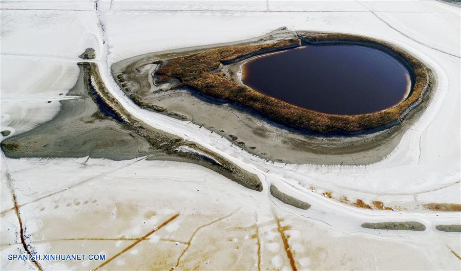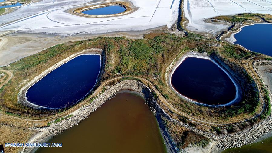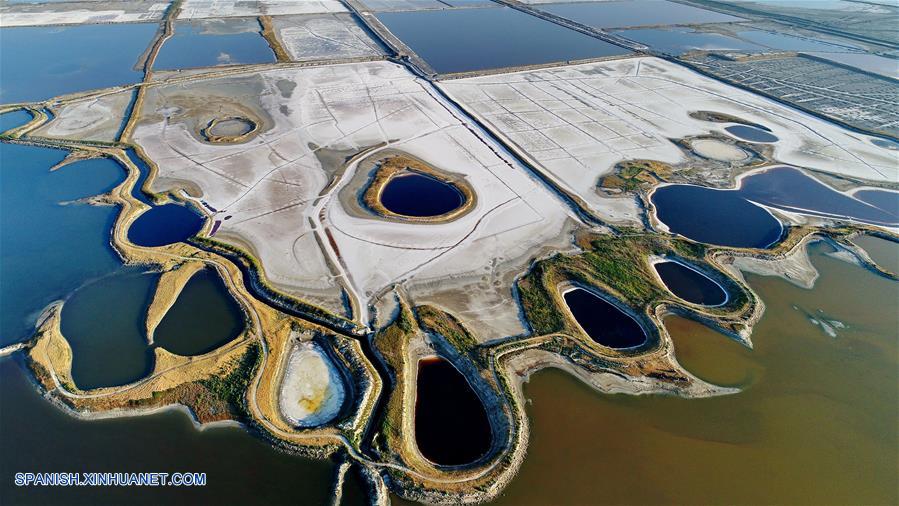 SHANXI, septiembre 4, 2018 (Xinhua) -- Vista aérea del paisaje del lago salado, en Yuncheng, provincia de Shanxi, en el norte de China, el 4 de septiembre de 2018. (Xinhua/Huang Wenpeng)