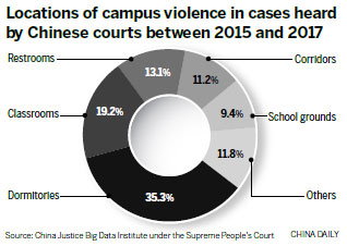 La mayoría de los casos de violencia en el campus se escucharon en las provincias de Henan, Guizhou y Shandong, y más de la mitad de los delitos implicaban asuntos triviales, dijo el instituto, que opera bajo el Tribunal Popular Supremo.