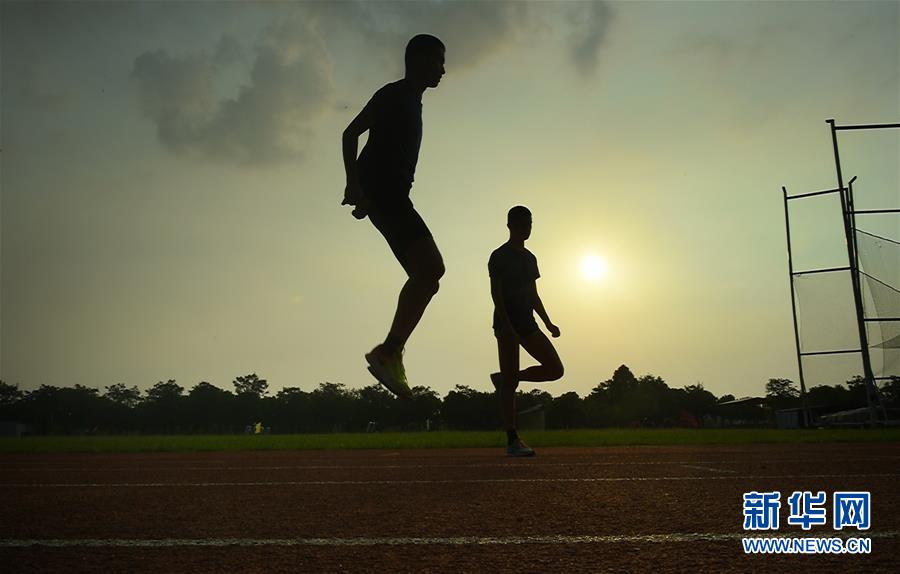 La imagen muestra a los hermanos calentando durante el entrenamiento de atletismo (foto del 15 de agosto). Agencia de Noticias Xinhua, reportero Li Yuze.