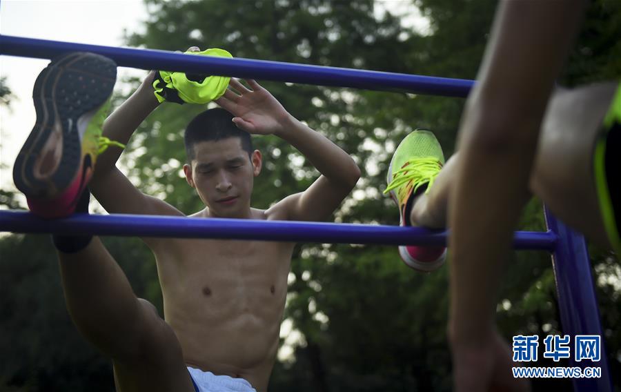 La imagen muestra a los hermanos haciendo ejercicios de estiramiento en la pista después del entrenamiento de la ma?ana (foto del 16 de agosto). Agencia de noticias Xinhua, reportero Li Yuze