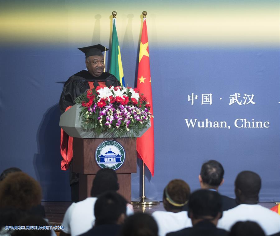 En la universidad, ubicada en la ciudad de Wuhan, capital de la provincia de Hubei, se llevó a cabo una ceremonia en la que se confirió al presidente gabonés el grado honorario.