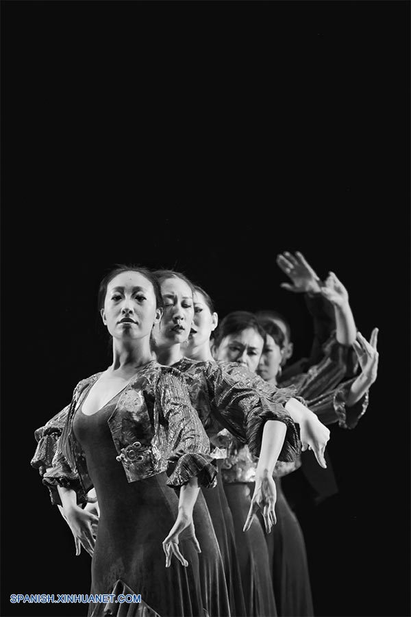 Los aficionados del estudio de arte flamenco Lucero de Beijing representan el 31 de agosto su obra "Antiguo jardín" en el Teatro de Beijing.(Cortesía: Estudio Lucero)