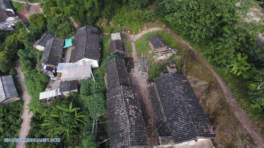 YUNNAN, septiembre 8, 2018 (Xinhua) -- Vista de una vivienda da?ada en el municipio de Tongguan del Condado Autónomo Hani de Mojiang, provincia de Yunnan, en el suroeste de China, el 8 de septiembre de 2018. Catorce personas sufrieron heridas leves como consecuencia de un sismo que sacudió el distrito autónomo de la etnia hani de Mojiang en la provincia suroccidental china de Yunnan, a las 10:31 del sábado (hora de Beijing), informaron las autoridades locales. Equipos profesionales de rescate equipados con sensores para ubicar persanas sepultadas, cámaras térmicas y excavadoras, así como perros rastreadores, también fueron enviados a la zona afectada. (Xinhua/Zhou Lei)