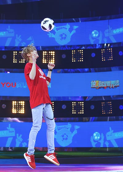 El actor Lu Han muestra sus habilidades de malabarismo. [Foto proporcionada a China Daily]