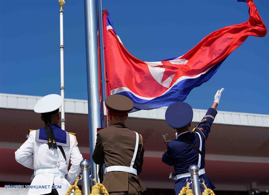 PYONGYANG, septiembre 9, 2018 (Xinhua) -- Soldados izan la bandera nacional previo a un desfile para celebrar el 70 aniversario de la fundación de la República Popular Democrática de Corea (RPDC), en Pyongyang, RPDC, el 9 de septiembre de 2018. (Xinhua/Xing Guangli)