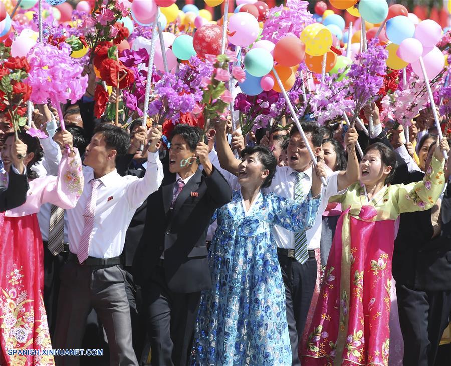 PYONGYANG, septiembre 9, 2018 (Xinhua) -- Personas participan en un desfile para celebrar el 70 aniversario de la fundación de la República Popular Democrática de Corea (RPDC) en Pyongyang, RPDC, el 9 de septiembre de 2018. (Xinhua/Yao Dawei)