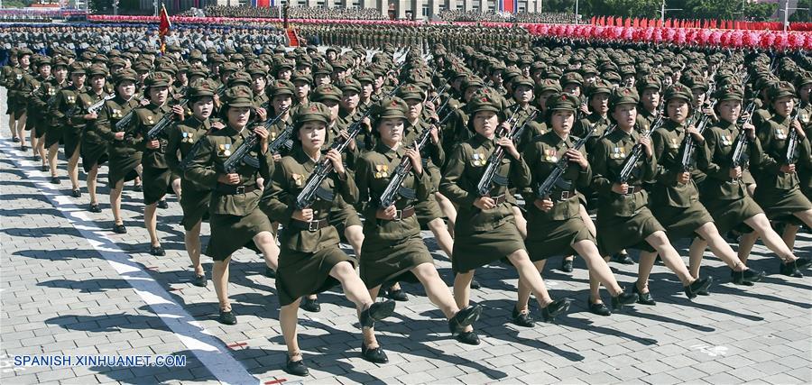 PYONGYANG, septiembre 9, 2018 (Xinhua) -- Soldados marchan durante un desfile para celebrar el 70 aniversario de la fundación de la República Popular Democrática de Corea (RPDC) en Pyongyang, RPDC, el 9 de septiembre de 2018. (Xinhua/Yao Dawei)