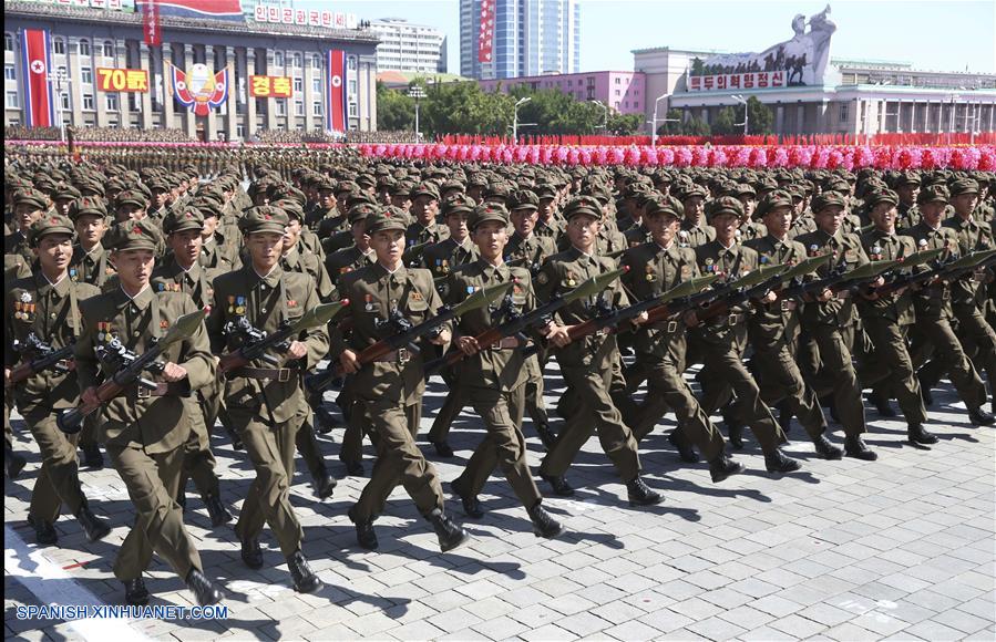PYONGYANG, septiembre 9, 2018 (Xinhua) -- Soldados marchan durante un desfile para celebrar el 70 aniversario de la fundación de la República Popular Democrática de Corea (RPDC) en Pyongyang, RPDC, el 9 de septiembre de 2018. (Xinhua/Yao Dawei)