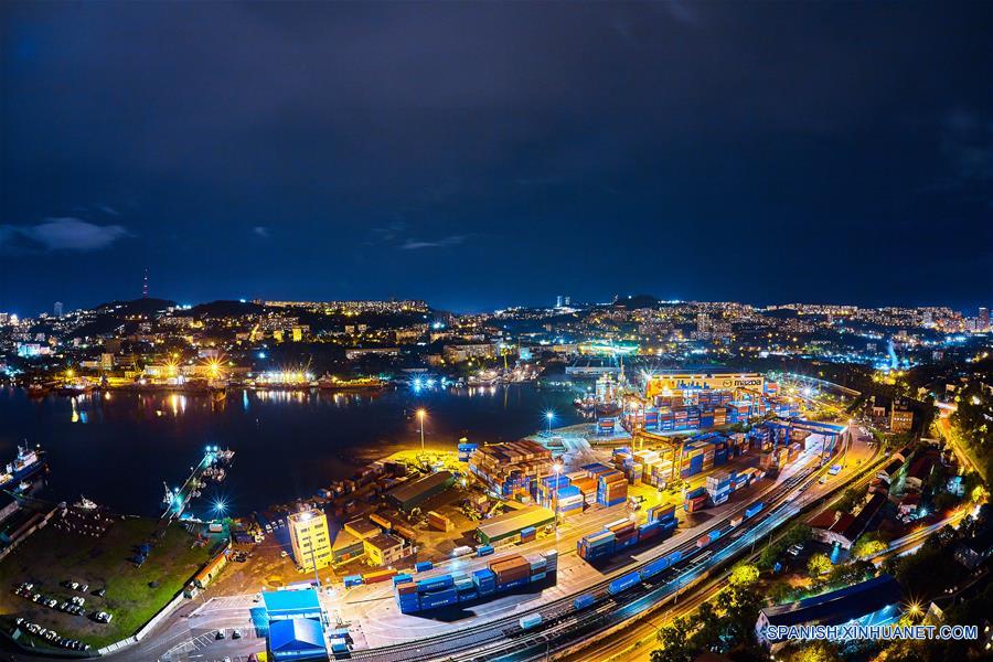 Imagen del 9 de septiembre de 2018 de una vista nocturna de la ciudad de Vladivostok, Rusia. (Xinhua/Wu Gang)