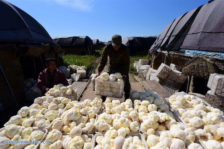 HEILONGJIANG, septiembre 10, 2018 (Xinhua) -- Agricultores suben hongos a un camión, en el municipio de Hailin, en la ciudad de Hailin, provincia de Heilongjiang, en el noreste de China, el 10 de septiembre de 2018. Los agricultores estuvieron ocupados cosechando hongos. (Xinhua/Zhang Chunxiang)