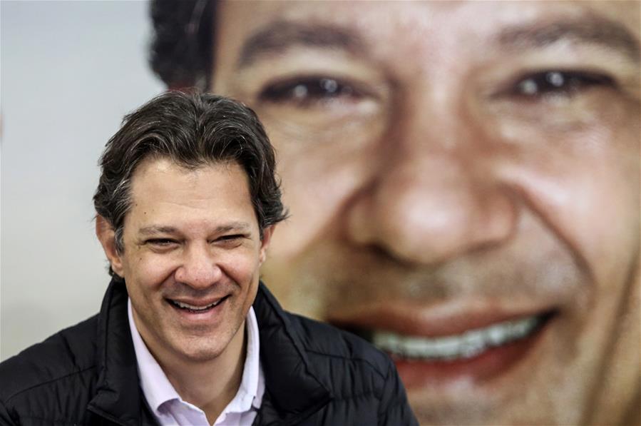 SAO PAULO, septiembre 11, 2018 (Xinhua) -- Imagen de archivo del 7 de agosto de 2018 del candidato vicepresidencial del Partido de los Trabajadores (PT), Fernando Haddad, participando durante un anuncio de alianza en la sede del PCdoB, en Sao Paulo, Brasil, el 7 de agosto de 2018. El Partido de los Trabajadores (PT) de Brasil aprobó el martes al ex alcalde de Sao Paulo, Fernando Haddad, como nuevo candidato a la Presidencia en reemplazo del ex presidente Luiz Inácio Lula da Silva, cuya candidatura fue impugnada por la Justicia Electoral con base en la Ley de la Ficha Limpia. La decisión fue confirmada por el líder del PT en la Cámara de Diputados, José Guimaraes, tras una reunión a puerta cerrada de la dirección nacional en Curitiba que aprobó la decisión por unanimidad, después de un carta enviada por el ex presidente dando su aval a la decisión. (Xinhua/Rahel Patrasso)
