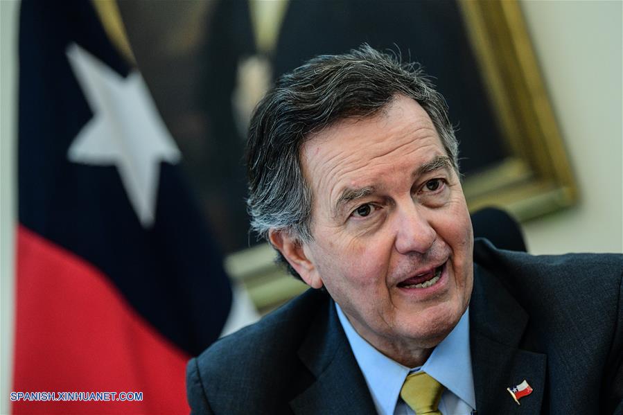SANTIAGO, septiembre 11, 2018 (Xinhua) -- Imagen del 5 de septiembre de 2018 del ministro de Relaciones Exteriores chileno, Roberto Ampuero, participando en una entrevista, en la sede del Ministerio de Relaciones Exteriores de Chile, en Santiago, capital de Chile. "Sí se unen el sue?o chino y el chileno. Es importante la colaboración. Para Chile, China es un país extraordinariamente importante", afirmó el canciller chileno, Roberto Ampuero, en entrevista con la Agencia de Noticias Xinhua previo a su primera gira oficial al país asiático. Chile fue el primer país en América del Sur que estableció relaciones diplomáticas con China. En 2020 se conmemorarán los 50 a?os de relaciones entre los dos países. (Xinhua/Jorge Villegas)