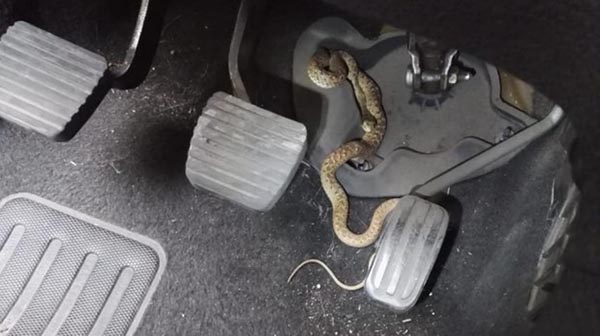 Los hechos ocurrieron el pasado fin de semana, cuando la conductora vio algo en el parabrisas del coche mientras conducía, y sin saber lo que era, sacó la mano e intentó tirarlo, pensando que era una rama, pero, de alguna manera, la serpiente entró dentro del vehículo y se enredó en los pedales.
