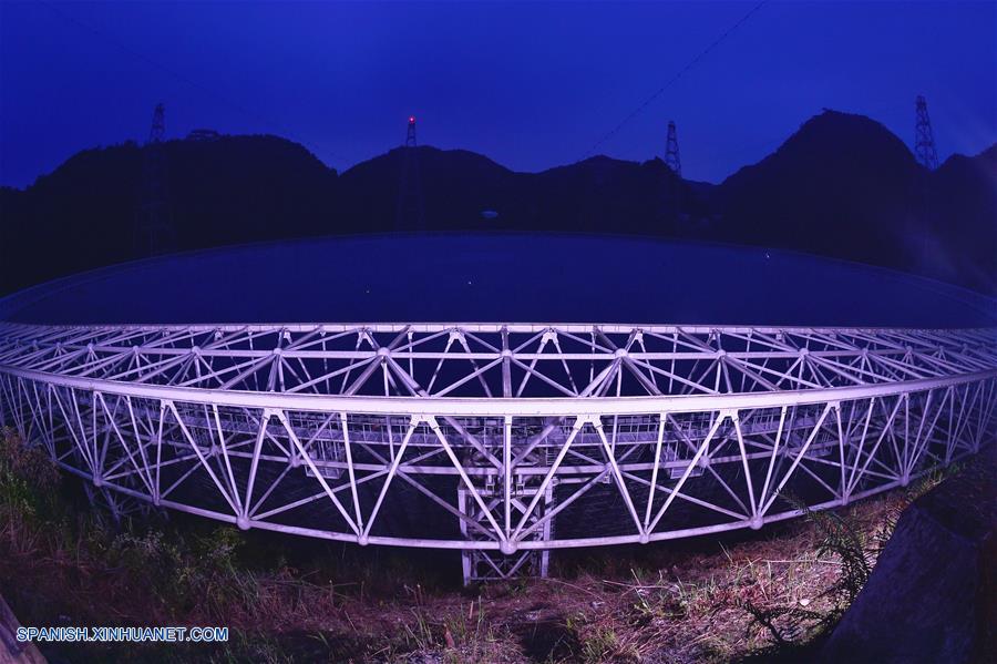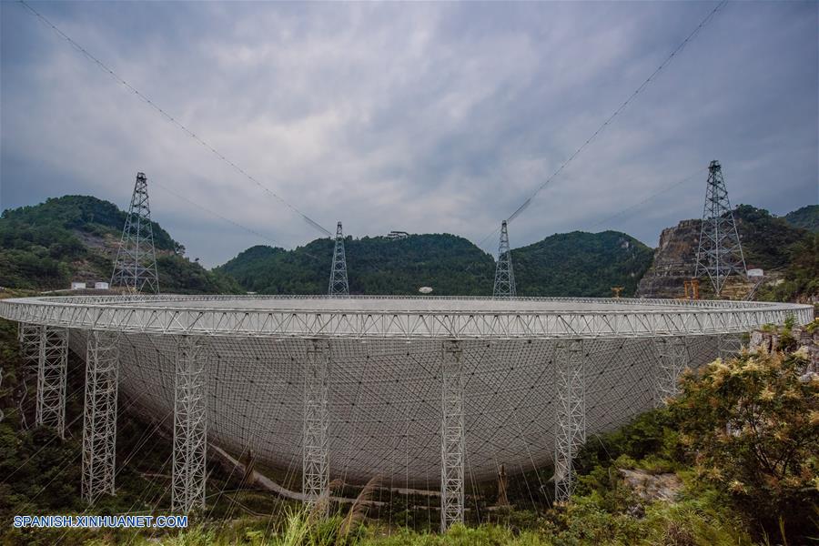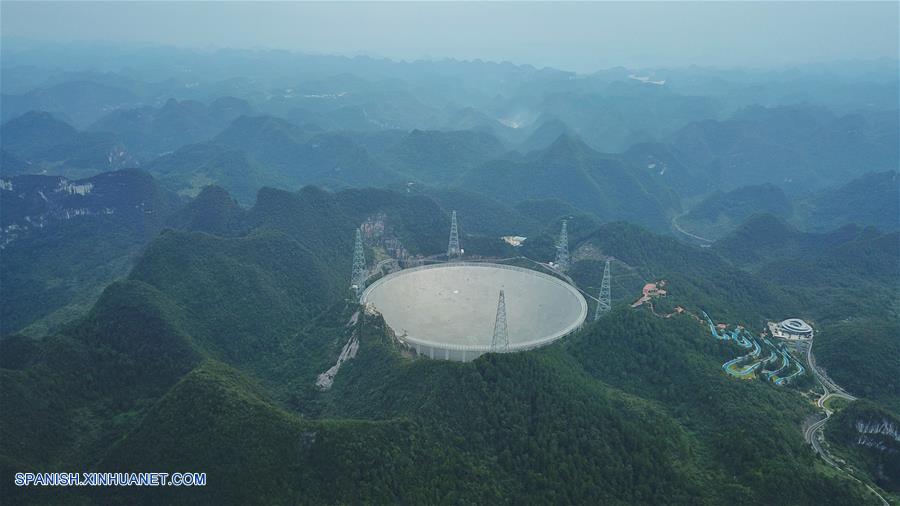 GUIZHOU, septiembre 11, 2018 (Xinhua) -- Vista del Telescopio de Apertura Esférica de 500 metros de China (FAST, por sus siglas en inglés), en la provincia de Guizhou, en el suroeste de China, el 11 de septiembre de 2018. El FAST ha descubierto 44 nuevos púlsares hasta ahora. (Xinhua/Liu Xu)
