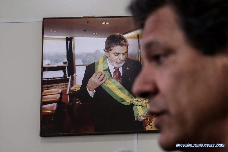SAO PAULO, septiembre 13, 2018 (Xinhua) -- El candidato a la Presidencia de Brasil del Partido de los Trabajadores (PT), Fernando Haddad, participa durante una conferencia de prensa, en Sao Paulo, Brasil, el 13 de septiembre de 2018. Dos días después del lanzamiento oficial de su candidatura, Fernando Haddad, presidenciable del PT de Brasil, lidera los sondeos de intención de voto con 22 por ciento, según la encuesta divulgada el jueves por el instituto Vox Populi, encargada por la Central Unica de Trabajadores (CUT). (Xinhua/Rahel Patrasso)