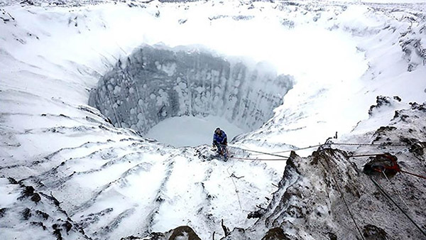 Siberia, Rusia, 14/09/2018(El Pueblo en Línea) - El descubrimiento de un gran cráter en el permafrost de la península de Yamal, en Siberia, en 2014 provocó una inusual atención científica y popular a escala internacional. Se difundieron diversas hipótesis sobre las causas del hundimiento circular que alcanzaba casi 200 metros de profundidad. Se propuso desde un meteorito hasta experimentación militar, pasando por el más probable resultado de un deshielo del permafrost como consecuencia del cambio climático.